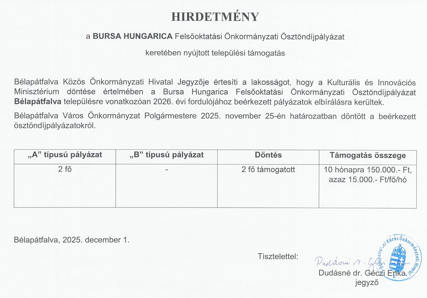Bélapátfalva Város polgármestereként tisztelettel köszöntöm!